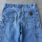 Vintage Y2K blue Carhartt double knee work wear carpenter pants. Cut into basically long shorts. Few markings on front. Measures 35x23 with a 10.25 inch leg opening. Please check measurements before purchasing. I do my best to show any flaws in pictures. Quick shipping! Bundles encouraged! @ants_haul on Instagram. 0685!!!