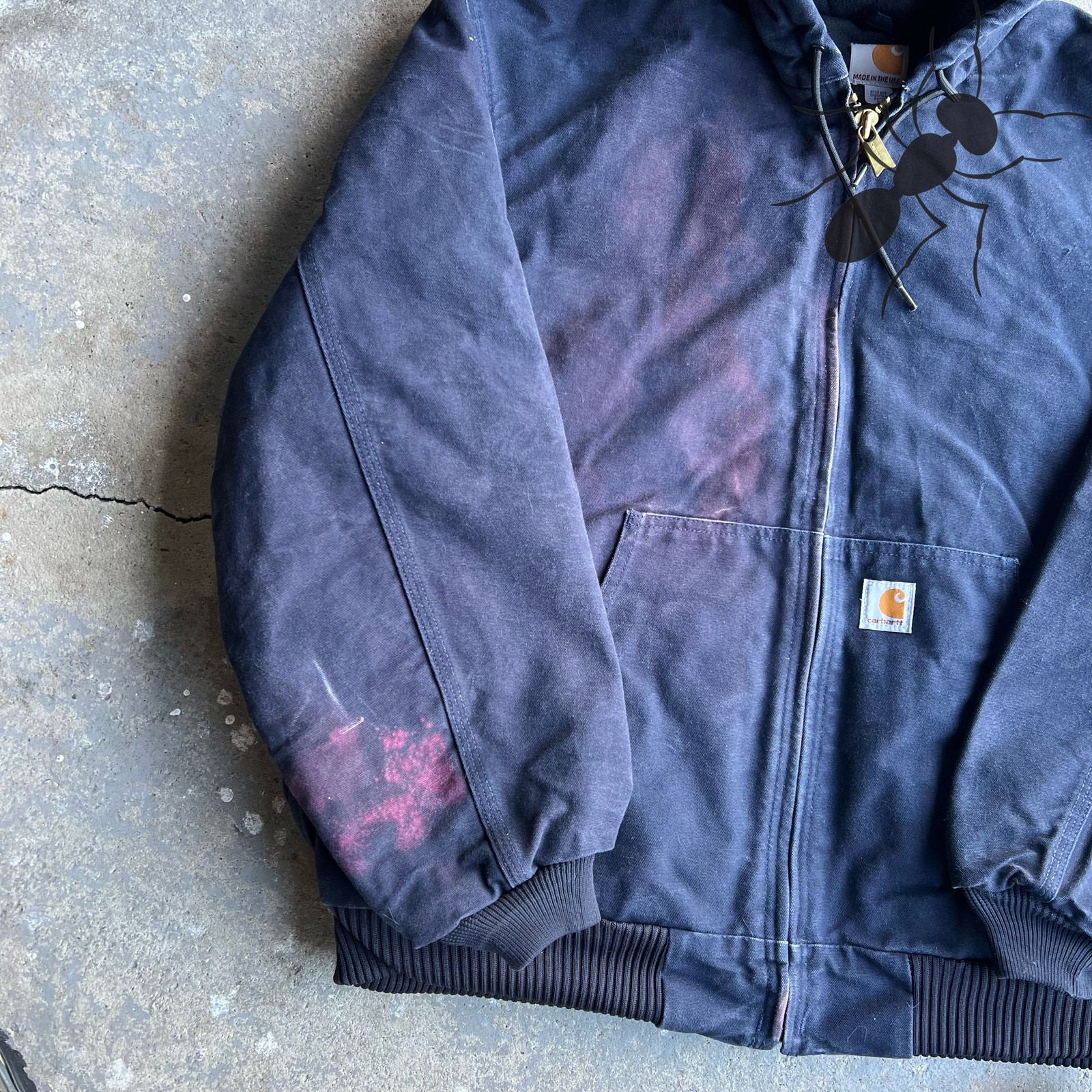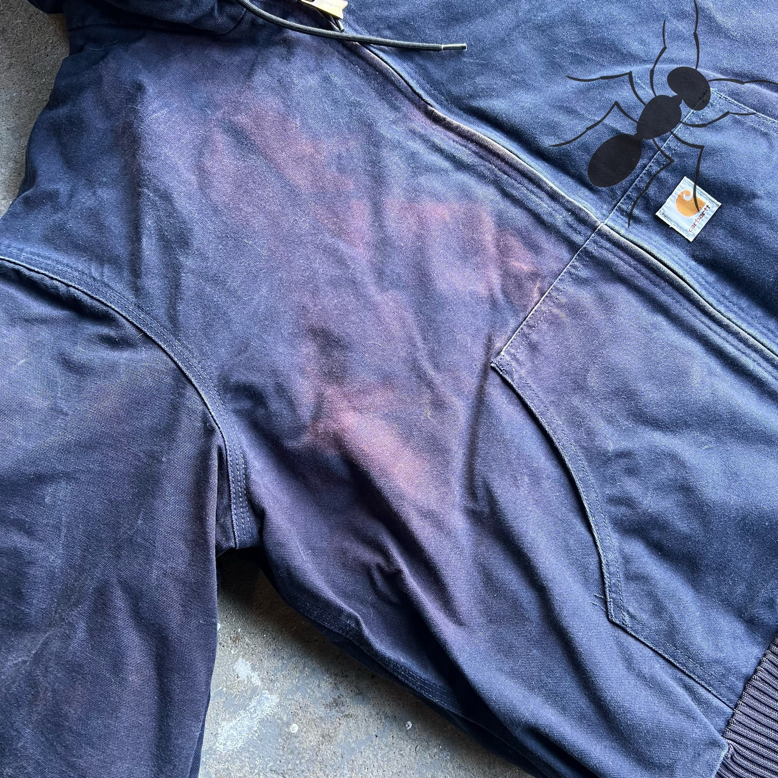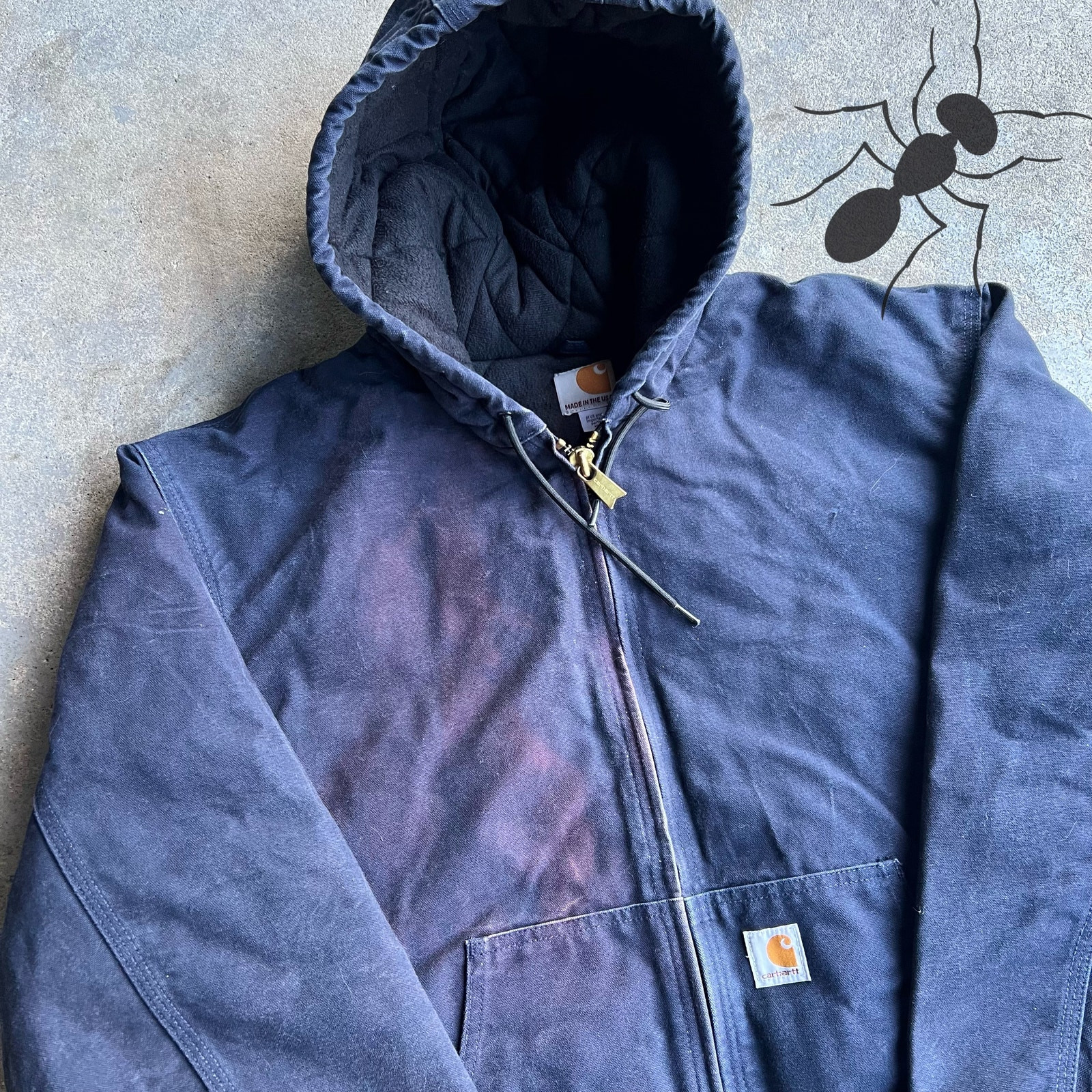 Vintage y2k blue STAINED carhartt hooded work wear jacket. Nice one! Has some bleach stains. Nothing too serious. Measures 28.5x28. Please check measurements before purchasing. I do my best to show any flaws in pictures. Quick shipping! Bundles encouraged! @ants_haul on Instagram.