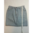 Vintage Y2K Boss by IG Design Denim Jean Skirt Womens Small Light Wash Mini Blue Festival Country Cowgirl Cowgirlcore Western Basic Everyday Staple Capsule Wardrobe Classic Timeless 5 pocket design Casual High Rise High Waisted America American Made 2000s denim skirt by Boss. Light blue. High waist. Leather brand logo tag on back. PLEASE READ – As with all vintage pieces please see measurements for sizing. VTG tag size 11/12, measurements indicate would be todays size small, please review measurements. Made in the USA. This VTG piece in great preowned condition for age. Professional, highly rated seller, quick shipper, open to offers! Approximate measurements: Waist: 29 inches Length (waist to hem): 18 inches 71602