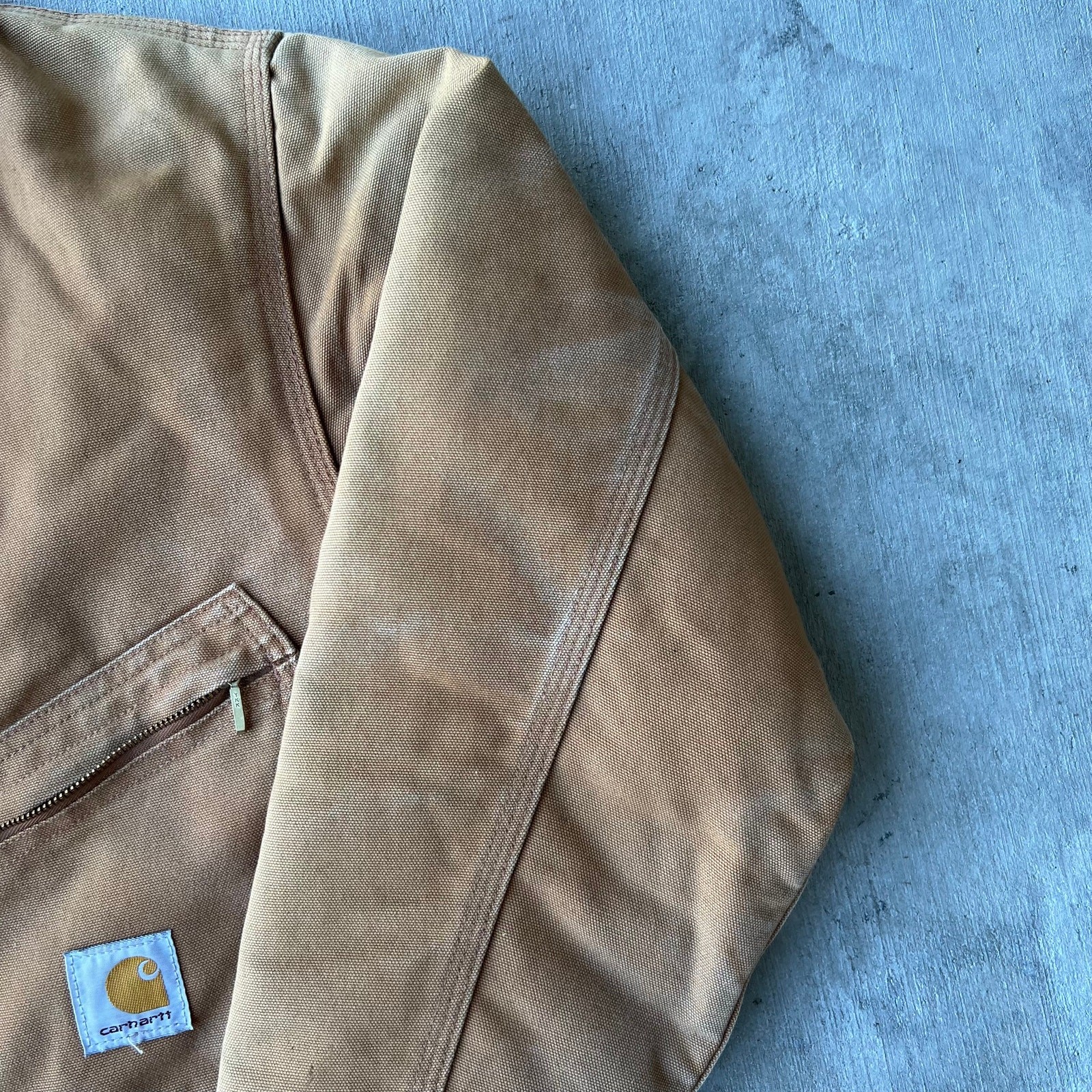 Vintage Y2K brown cropped Carhartt STAINED Detroit style work wear jacket. Great jacket. Has some dirt stains on it. Cut from coveralls so the zipper doesn’t function! Measures 24x21.5. Please check measurements before purchasing. I do my best to show any flaws in pictures. Quick shipping! Bundles encouraged! @ants_haul on Instagram. J0008!!!
