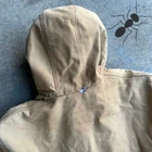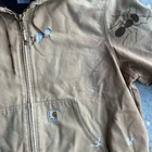 Vintage brown y2k distressed carhartt hooded work wear jacket. Good one. Has wear see the pics. Measures 27x29.5. No tag but id call it xl easily. Please check measurements before purchasing. I do my best to show any flaws in pictures. Quick shipping! Bundles encouraged! @ants_haul on Instagram.