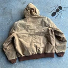 Vintage y2k J04 BRN brown carhartt hooded work wear jacket. Nice one just has some staining on the shoulder/ body region. See all the pics please!! Jacket measures 27.5x28. Please check measurements before purchasing. I do my best to show any flaws in pictures. Quick shipping! Bundles encouraged! @ants_haul on Instagram.