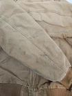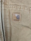 Distressed Carhartt J130 Tan Duck Canvas Heavyweight Jacket Y2K Workwear Size XL Distressed Carhartt J130 Tan Duck Canvas Heavyweight Jacket Y2K Workwear Size XL Features 100% Cotton Duck Canvas, Brushed Tricot Lined Main Body & Hood, Quilted Taffeta Sleeve Lining, Triple-Stitched Main Seams For Added Durability, Insulated Front Pockets, Rib Sleeve Cuffs With Self Binding At Sleeve Edge For Extra Durability, workwear, perfectly distressed with fading and stains, streetwear, hipster, thrashed, manufactured May 2013, Y2K, grunge. Measurements laying flat chest 27.5" length 28.5" arm inseam 20" Fabric 100% cotton fill 100% polyester This is a pre-owned item that may show signs of wear. Distressed with oil stains, broken in Carhartt jacket 14 Day returns accepted under the following conditions: Item must be in the same condition as stated If item shows additional wear buyer will receive a partial refund Buyer pays all shipping costs Refund amount will be for the item price only Please contact me prior to starting a return