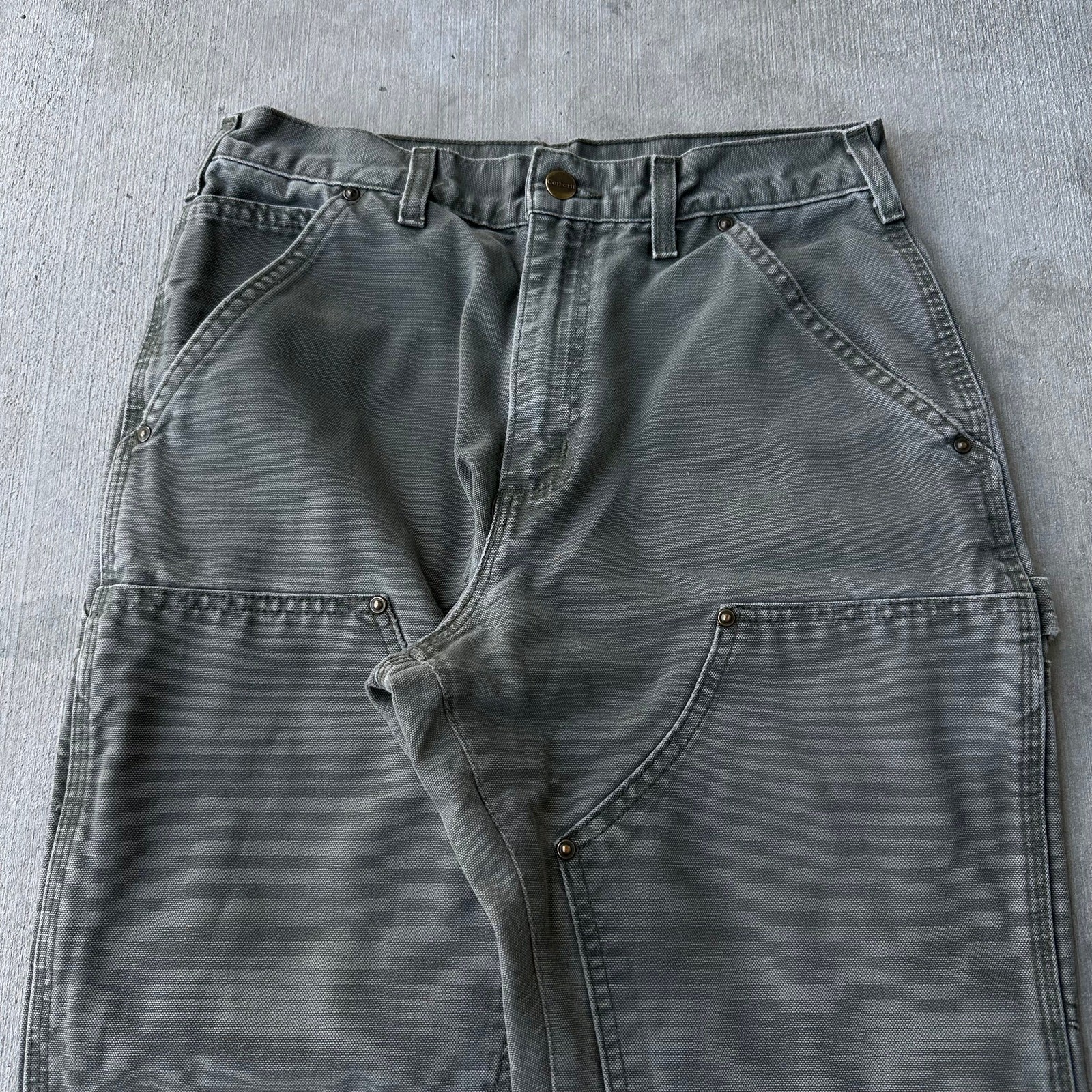 Vintage Y2K Carhartt MOS green double knee work wear carpenter pants. Nice pair! Heels frayed. Light fade on knees. Measures 28x31 and a 7.5 inch leg opening. Please check measurements before purchasing. I do my best to show any flaws in pictures. Quick shipping! Bundles encouraged! @ants_haul on Instagram. 1168