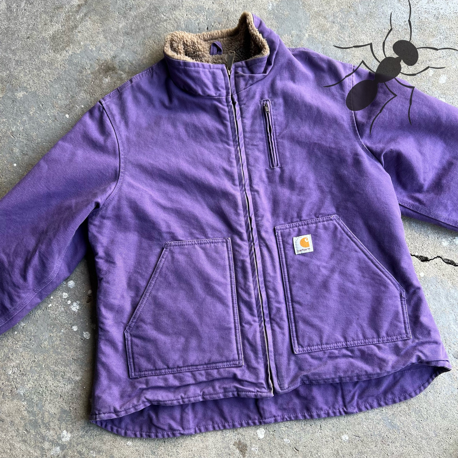 Vintage WOMENS y2k carhartt purple Sherpa lined work wear jacket. Really nice color. Measures 22.5x28.5. Please check measurements before purchasing. I do my best to show any flaws in pictures. Quick shipping! Bundles encouraged! @ants_haul on Instagram.