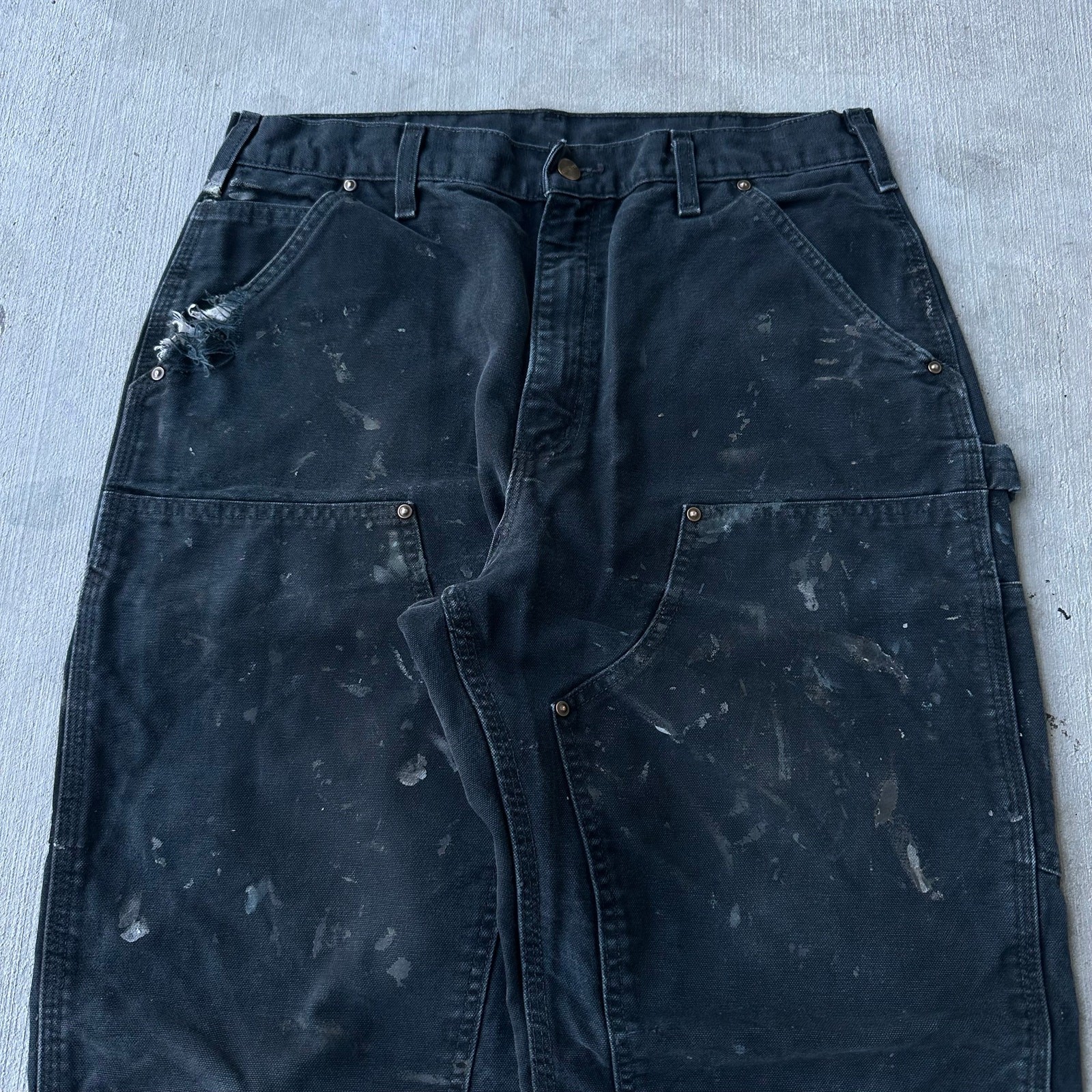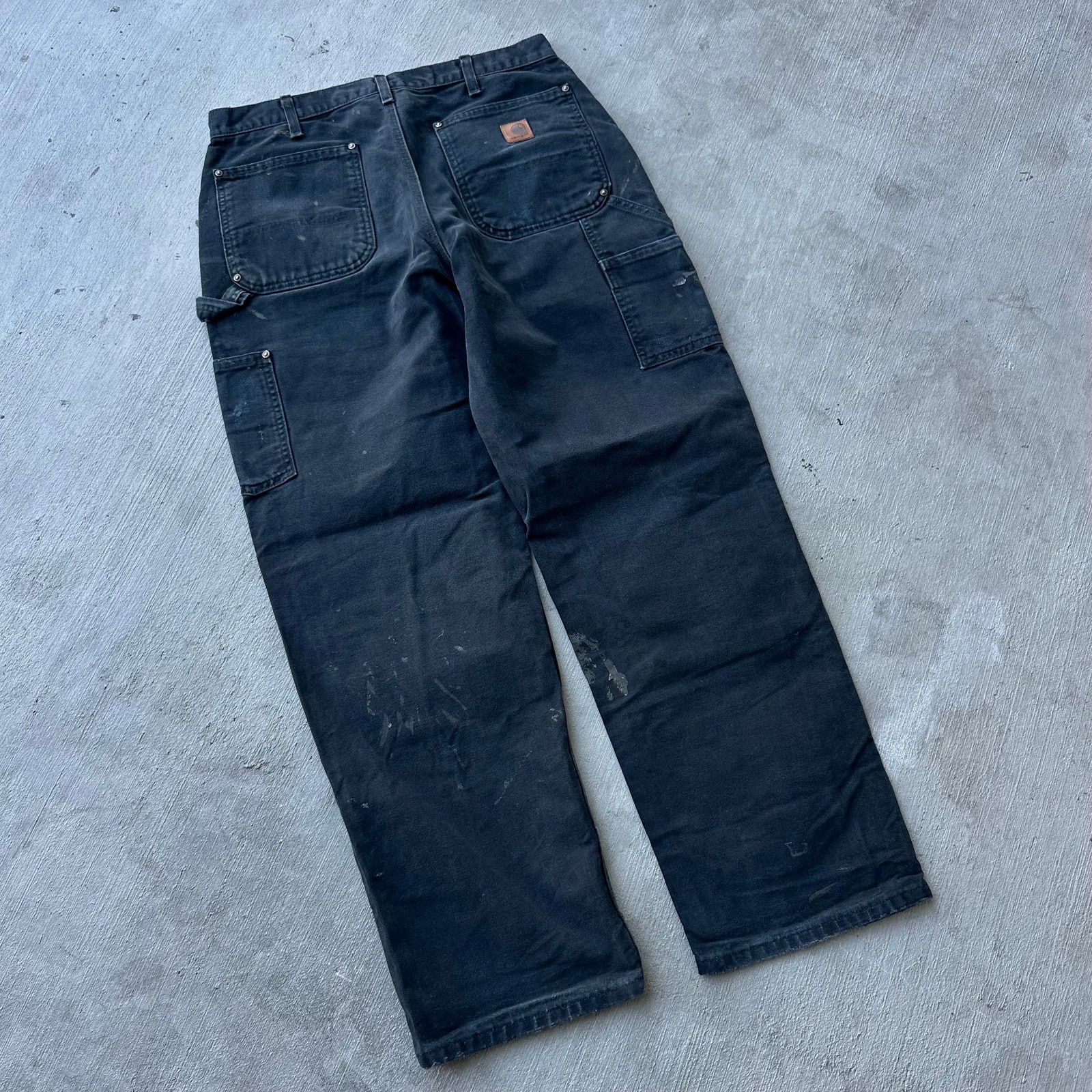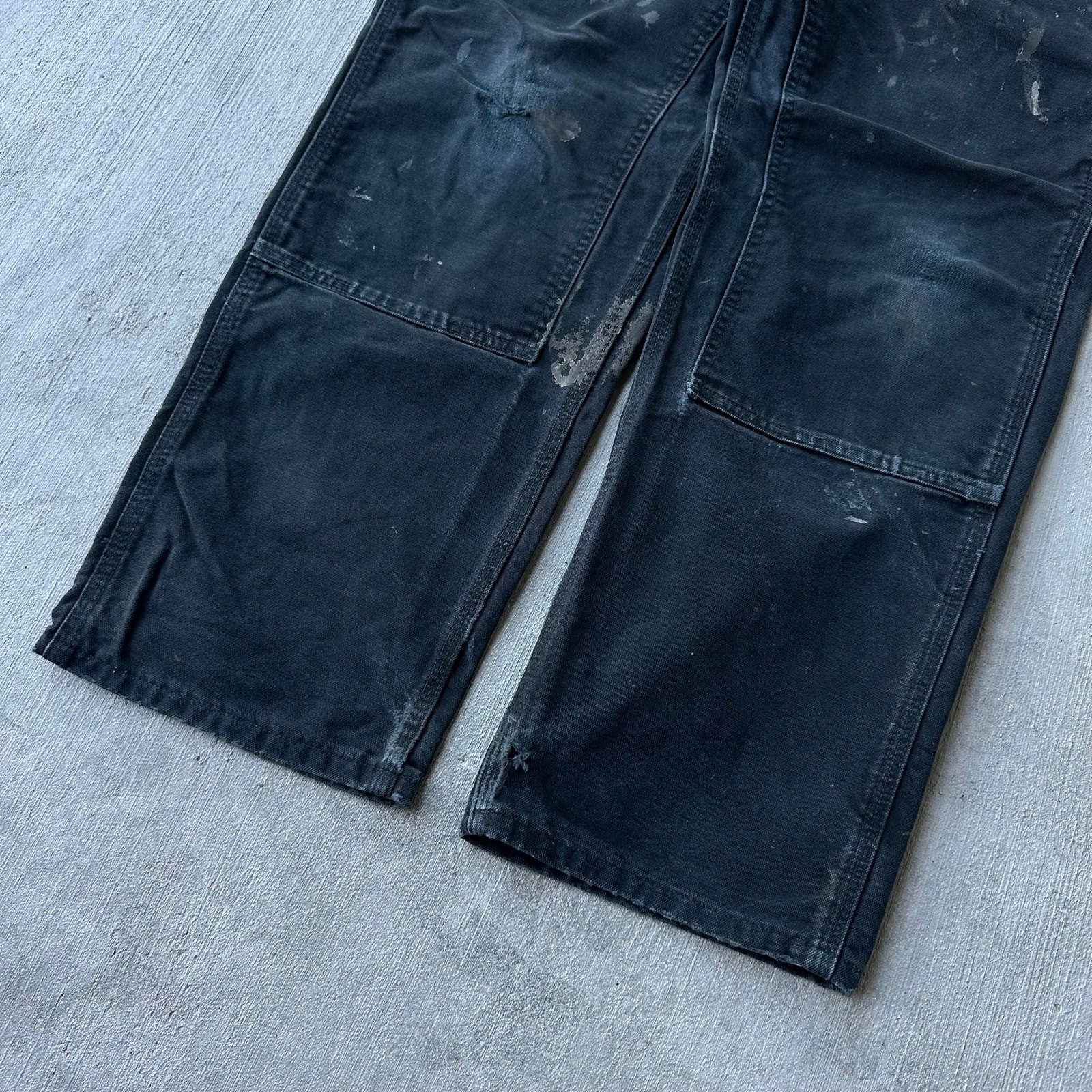 Vintage Y2K Carhartt black double knee work wear carpenter pants. Nice pair! Stained throughout. Measures 34x30.5 and a 9.5 inch leg opening. Please check measurements before purchasing. I do my best to show any flaws in pictures. Quick shipping! Bundles encouraged! @ants_haul on Instagram. 1172!!!