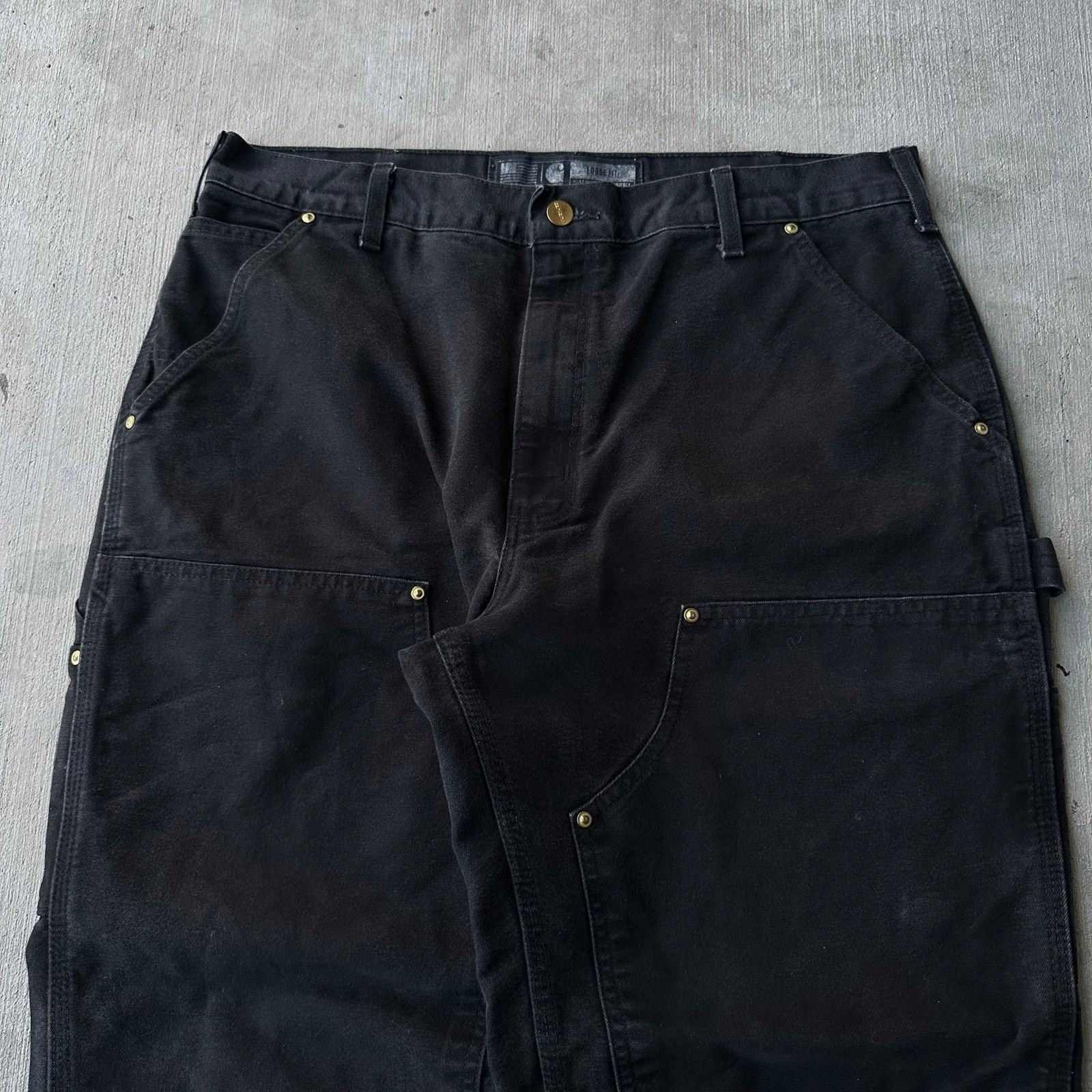 Vintage Y2K Carhartt black double knee work wear carpenter pants. Nice pair! Few small marks and heels torn. Measures 36x29.5 and a 9.25 inch leg opening. Please check measurements before purchasing. I do my best to show any flaws in pictures. Quick shipping! Bundles encouraged! @ants_haul on Instagram. 1167!!!