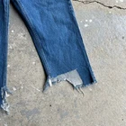 Vintage Y2K Carhartt blue THRASHED denim jeans work wear carpenter pants. Bottoms are dragged crazy. Measure 37 waist, one inseam is 25 and one is 27. Please check measurements before purchasing. I do my best to show any flaws in pictures. Quick shipping! Bundles encouraged! @ants_haul on Instagram.
