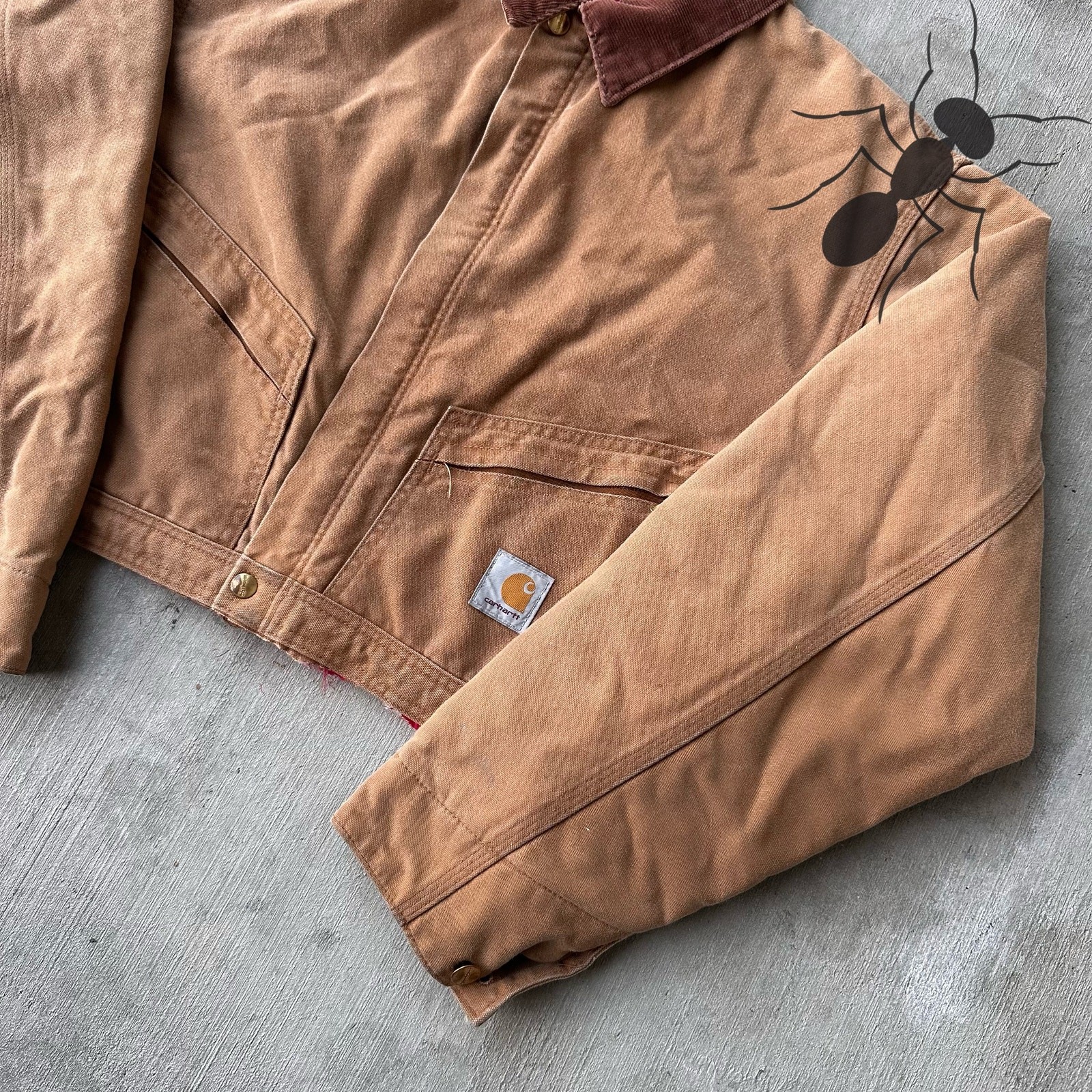 Vintage Y2K Carhartt brown cropped Detroit style work wear jacket. CUT FROM COVERALLS SO THE ZIPPER DOES NOT WORK!!! Measures 25.5x21. Please check measurements before purchasing. I do my best to show any flaws in pictures. Quick shipping! Bundles encouraged! @ants_haul on Instagram. J0162!!!