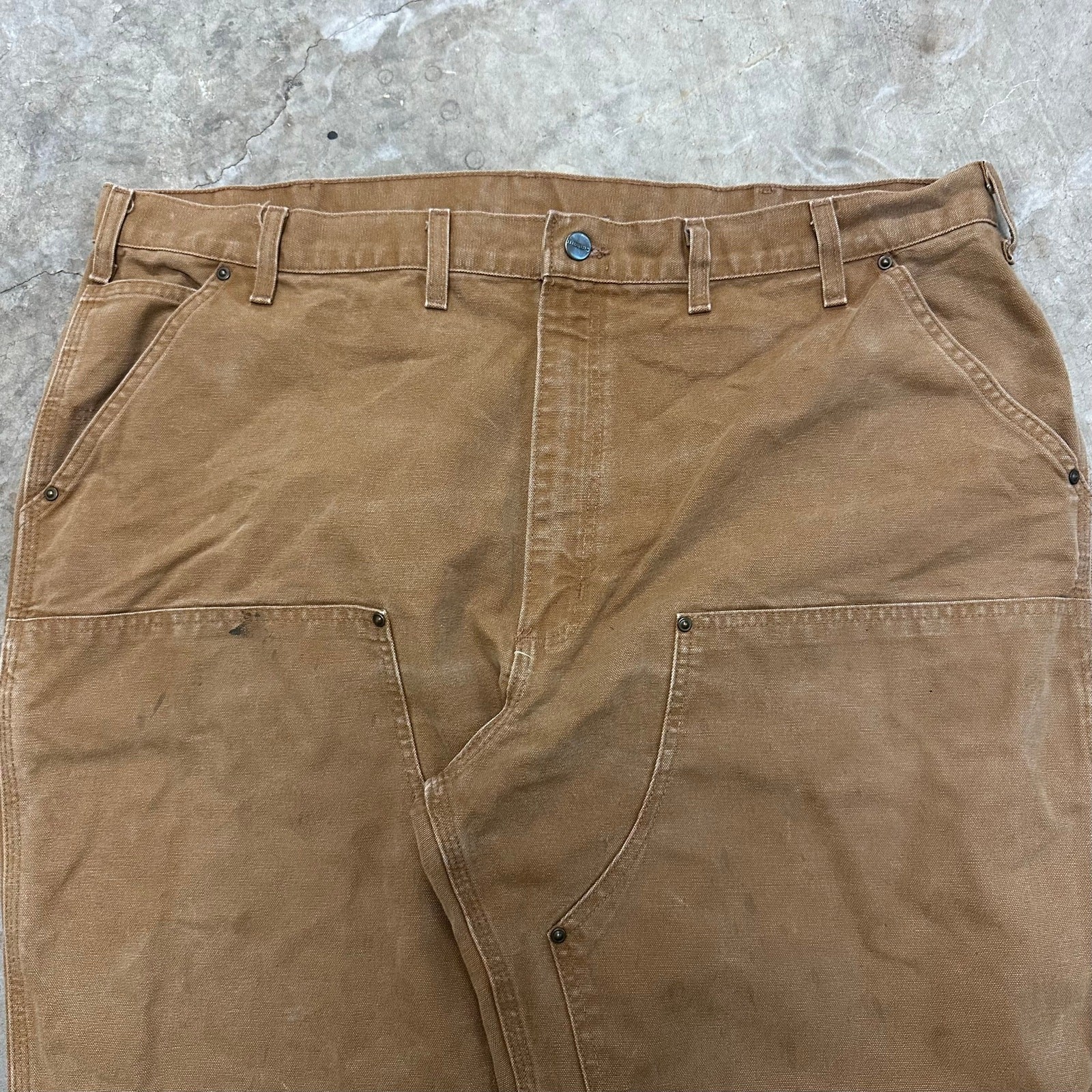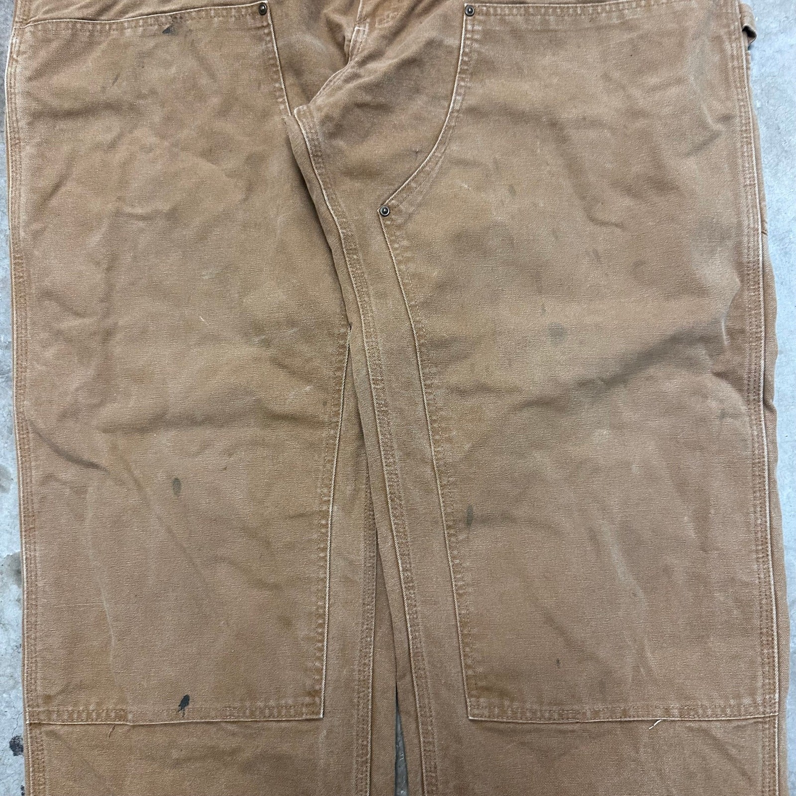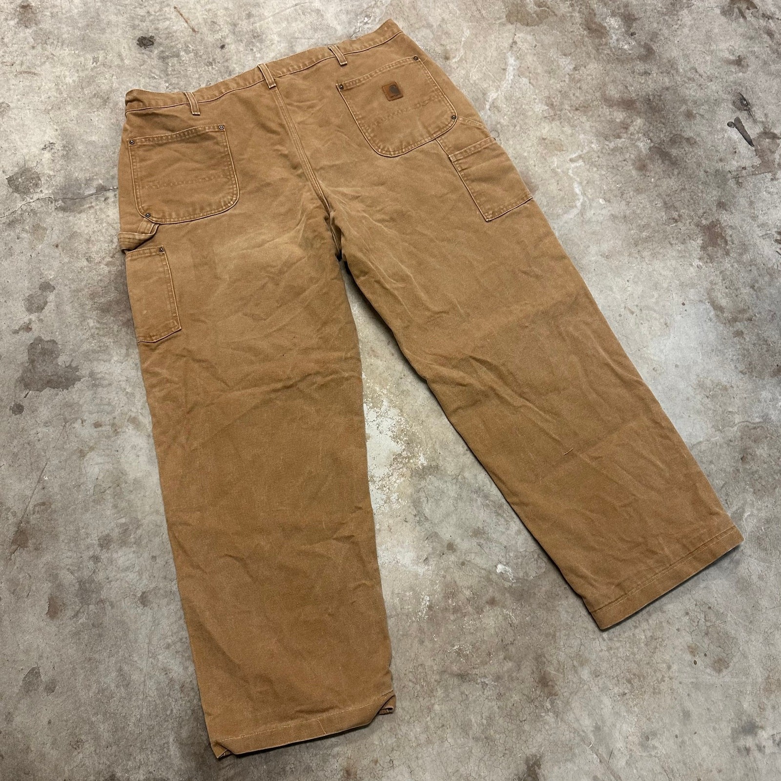 Vintage Y2K brown Carhartt double knee work wear carpenter pants. Few stains throughout. Ankles been folded in and sewn to be shorter. Measures 43x30 with a 10 inch leg opening. Please check measurements before purchasing. I do my best to show any flaws in pictures. Quick shipping! Bundles encouraged! @ants_haul on Instagram. 0783!!!