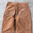 Vintage Y2K Carhartt brown double knee work wear carpenter pants. Nice pair. Paint stained. Measures 30x31 with a 8.75 inch leg opening. Please check measurements before purchasing. I do my best to show any flaws in pictures. Quick shipping! Bundles encouraged! @ants_haul on Instagram. 0977!!!