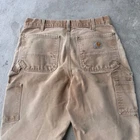 Vintage Y2K Carhartt brown double knee work wear carpenter pants. Great wear! Ripped and stained. Measures 31x33 with a 8.75 inch leg opening. Please check measurements before purchasing. I do my best to show any flaws in pictures. Quick shipping! Bundles encouraged! @ants_haul on Instagram. 0988!!!