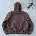 Vintage Y2K dark brown Carhartt hooded work wear jacket. Great one! Stains throughout. Fleece lining. Tag is faded but Measures 29.5x29.5. Best fits xxl so Please check measurements before purchasing. I do my best to show any flaws in pictures. Quick shipping! Bundles encouraged! @ants_haul on Instagram. J0034!!!