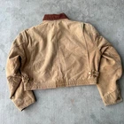 Vintage Y2K Carhartt cropped Detroit style brown work wear jacket. Nice one! CUT FROM COVERALLS SO ZIPPER DOESNT WORK! Measures 24.5x20.5. Please check measurements before purchasing. I do my best to show any flaws in pictures. Quick shipping! Bundles encouraged! @ants_haul on Instagram. J0281!!!