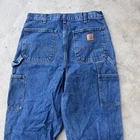Vintage Y2K Carhartt denim blue jeans double knee work wear carpenter pants. Nice pair! Measures 32x34 with a 9.5 inch leg opening. Please check measurements before purchasing. I do my best to show any flaws in pictures. Quick shipping! Bundles encouraged!