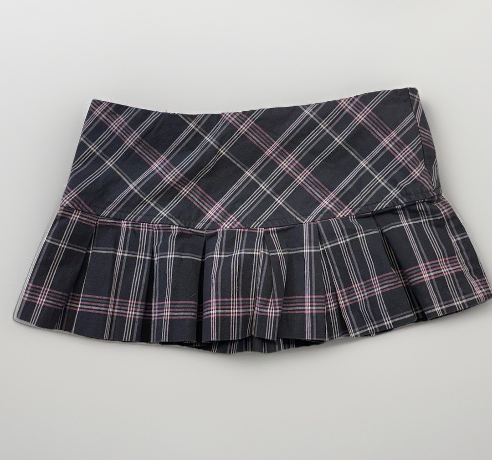 Vintage Y2K Charlotte Russe Low Rise Micro Mini Pleated Skirt Size XS Gray Plaid