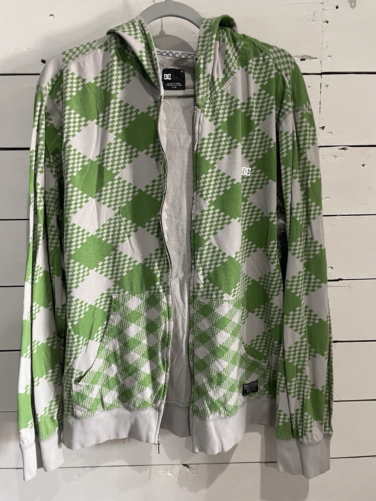 A Vintage Y2K DC Shoes Hoodie Size: Adult Large Color: Green with a Checkered pattern Full Zip Sweatshirt & in great condition!