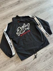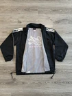 Elevate your wardrobe with the vintage FUBU windbreaker jacket, a true testament to the style and spirit of the early 2000s. Crafted with a durable polyester outer shell and a comfortable nylon lining, this mid-length jacket is designed for everyday wear. Its full zip closure, stand-up collar, and embroidered logo accents embody the practicality and hip-hop flair of the era. Available in a classic blue color, this jacket is a versatile piece for both casual and travel occasions. The lightweight design, coupled with polyester insulation, ensures warmth across the cooler seasons of fall and spring. Embrace the nostalgia with this iconic FUBU jacket, a regular fit size large, and add a touch of Y2K sports theme to your contemporary ensemble. Measurements shown in photos. 📌left arm white stripe could be easily restored, only half way and sits flat when wearing.