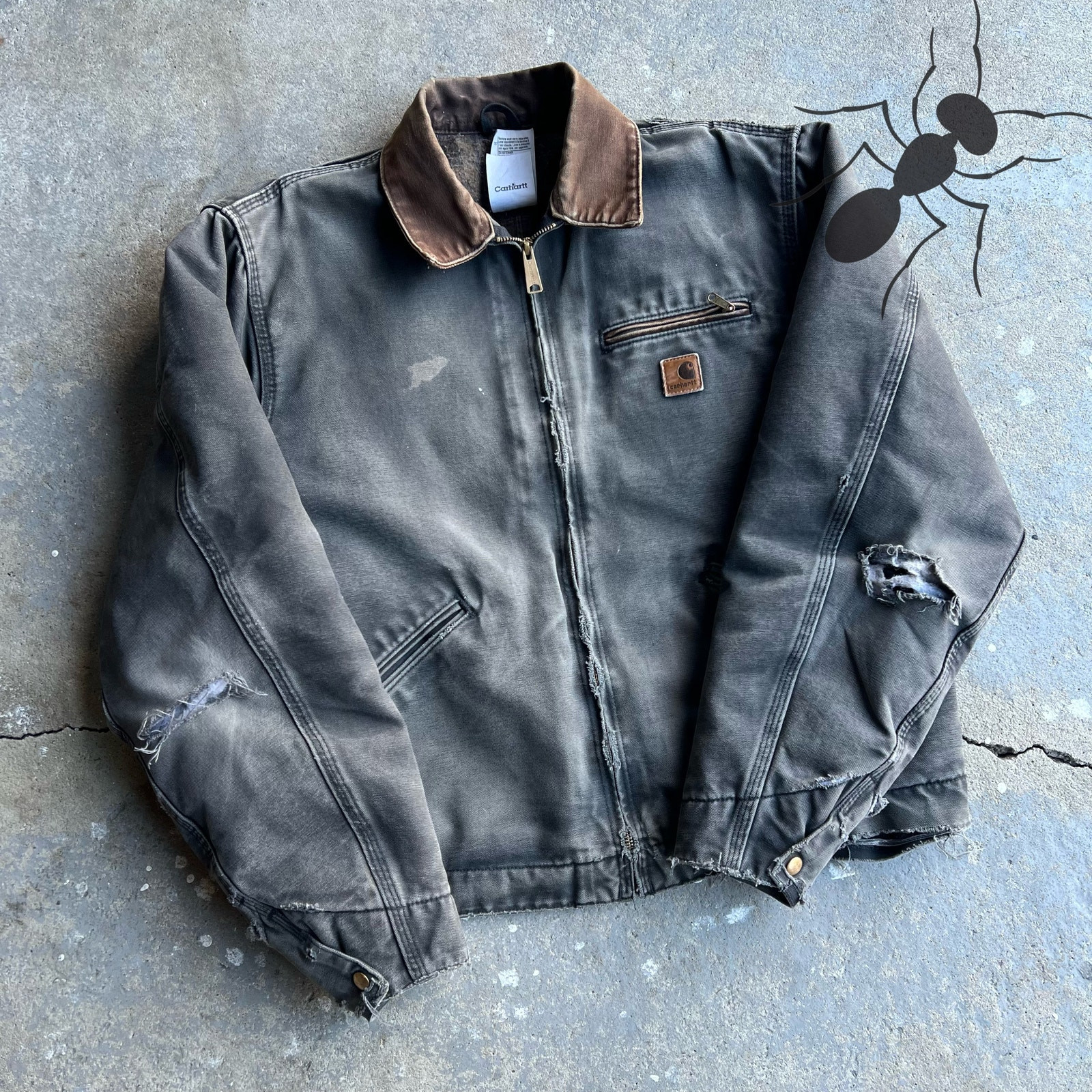 This jacket is a total gem! The vintage fade is incredible—turned a perfect gray with that well-loved, broken-in look. The distressed sleeves add so much character, but it’s still sturdy. Fits true to size, and the flaws just give it more charm. Super fast shipping too! If you want a unique Carhartt with serious Y2K vibes, this is it.