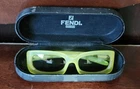 These Vintage Y2K Women's Green Fendi Sunglasses are a luxurious designer accessory that exudes style and sophistication. Made in Italy, these sunglasses feature tinted and polarized black lenses set within a geometric frame of green plastic. The Fendi brand adds a touch of glam, while the vintage design adds a timeless appeal. Perfect for ladies looking to make a fashion statement with a classic piece that is both chic and functional. Complete with a case for safekeeping, these sunglasses are a must-have for any fashion-forward individual.