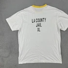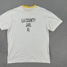 The Vintage LA County Jail California Y2K Adult XL White Ringer Short Sleeve T-Shirt is a unique and eye-catching piece of clothing for men. Made of cotton with a crew neck and regular fit, this shirt features a white color with a classic ringer design. Perfect for all seasons, this shirt is ideal for someone looking to add a touch of vintage charm to their wardrobe. The California theme and brand of LA County Jail make this shirt a standout piece for any outfit. No holes or stains See pictures for pictured measurements compare with your favorite garment and ask questions if you have any Add to your collection today Browse my other items I can combine shipping