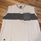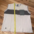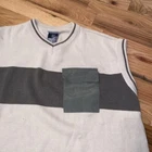 Vintage y2k Levi’s L2 sweater vest in good clean condition. Nice classic beige color with gray strip on chest and small utility pocket. There’s a small snag on back of the tag but other than that no major flaws at all. Tagged XL on L2 but measures to an adult medium fit. Measurements in pics.