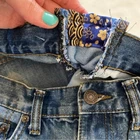 Upcycled, One of a kind, handmade wearable art Levi’s 505 Custom Jeans Waist 29 Womens size 8 See measurements Low - mid rise Elastic on sides of the waist Distressed, holes, frayed, bleach etc Mix of blue denim Cotton polyester blend Vintage early 2000s Y2K jeans Handmade Patchwork side panels : vintage floral fabrics etc Blue, tan, cream, navy etc Wide leg Barrel jean vibes , but not technically barrel Raw frayed hem, buyer can easily shorten without hemming Zip fly Classic 5 pockets Good used condition Note holes & fraying, etc Tags not description: eco friendly sustainable on sale cheap discounted business casual neutral luxe luxury designer classic classy clothes clothing fashion celeb celebrity core style tie dye art artist Montclair NJ local unique rare VTG retro nerdy cool awesome rad unique nostalgic collectible collectors Reworked redone remade recycled 90s style fashion clothing clothes iconic 90s retro vintage look grunge pale light blue women’s handcrafted jean flare