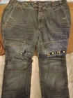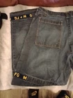 Elevate your vintage wardrobe with these Marithe Francois Girbaud denim jeans. With a solid blue and gold color, these wide-leg jeans feature a relaxed fit and 6-pocket denim design. The closure is a zip, and it has accents such as buttons, straps, zipper, and logo. These Y2K Girbaud jeans are perfect for the grunge and 90s theme. Made of denim and cotton material, these jeans are easy to care for and offer comfort and pockets as features. The inseam is 34 inches, and the waist size is 38 inches, making it ideal for big and tall men. These jeans are machine washable in cold water only and should not be dried. Jeans have minor issues to write back leg refer to pictures for details, however these girbaud jeans are in excellent condition and a great addition to any fan of girbaud and the 1990s grunge style of America. These are shipped from us to us. Thank you for your interest.
