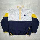 Vintage Y2K university of Michigan Wolverines white navy yellow windbreaker rain jacket half zip NCAA college sportswear streetwear retro boho Size: L Pit to pit: 26 Length: 28
