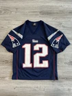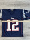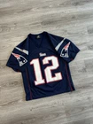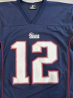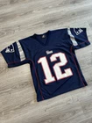 Vintage Y2K New England Patriots Tom Brady Jersey by Logo Athletic for Men in size M. This officially licensed NFL product features the iconic team logo and colors, perfect for any football fan looking to represent their team in style. This Y2K jersey is a must-have for any New England Patriots supporter wanting to show their love for the legendary player Tom Brady. Measurements shown in photos.
