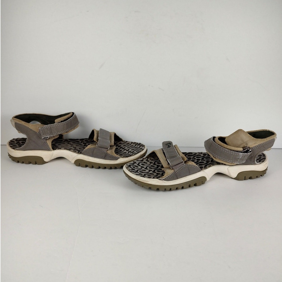VTG Y2K Tan/Grey Nike ACG outdoors casual sport sandals, womens size 9. Theyre in fine condition, the nubuck around the sandals are cracking No tears or holes Tread is a little worn Theyve been thoroughly cleaned before listing Please reference photos before purchasing