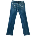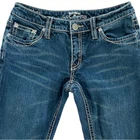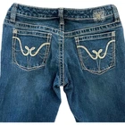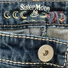 Vintage Y2K Sister Moon Low Rise Bootcut Denim Dark Wash Contrast Stitch - Women - 28 closure - zipper fly and button, 5 pocket construction, contrast metallic stitching, embroidered back pockets, 99% cotton, 1% spandex rise - 7.5 inseam - 32.5 in waist laid flat - 15 in Great condition. No stains, rips or tears. Pet free and smoke free environment See all pics for any wear/condition tags: millennial, classic, preppy, boho, festival, western, cowgirl
