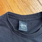 The vintage y2k Stussy Gucci No. 4 men's medium tee is a stylish and unique t-shirt featuring a classic black color with a crew neck and short sleeves. Made of comfortable cotton material, this tee is perfect for men who appreciate designer fashion and hip hop style. The tee showcases the iconic Stussy brand and Gucci logo, making it a standout piece in any wardrobe.