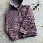 Vintage y2k WOMENS faded DWN carhartt hooded work wear jacket. Beautiful color & top tier fading. Faded into a beautiful shade of purple. Measures 21x26.5. Sleeves have distressing as well as the cuffs and pockets on the front. Borderline “thrashed” see all pics and PLEASE check measurements before purchasing. I do my best to show any flaws in pictures. Quick shipping! Bundles encouraged! @ants_haul on Instagram.