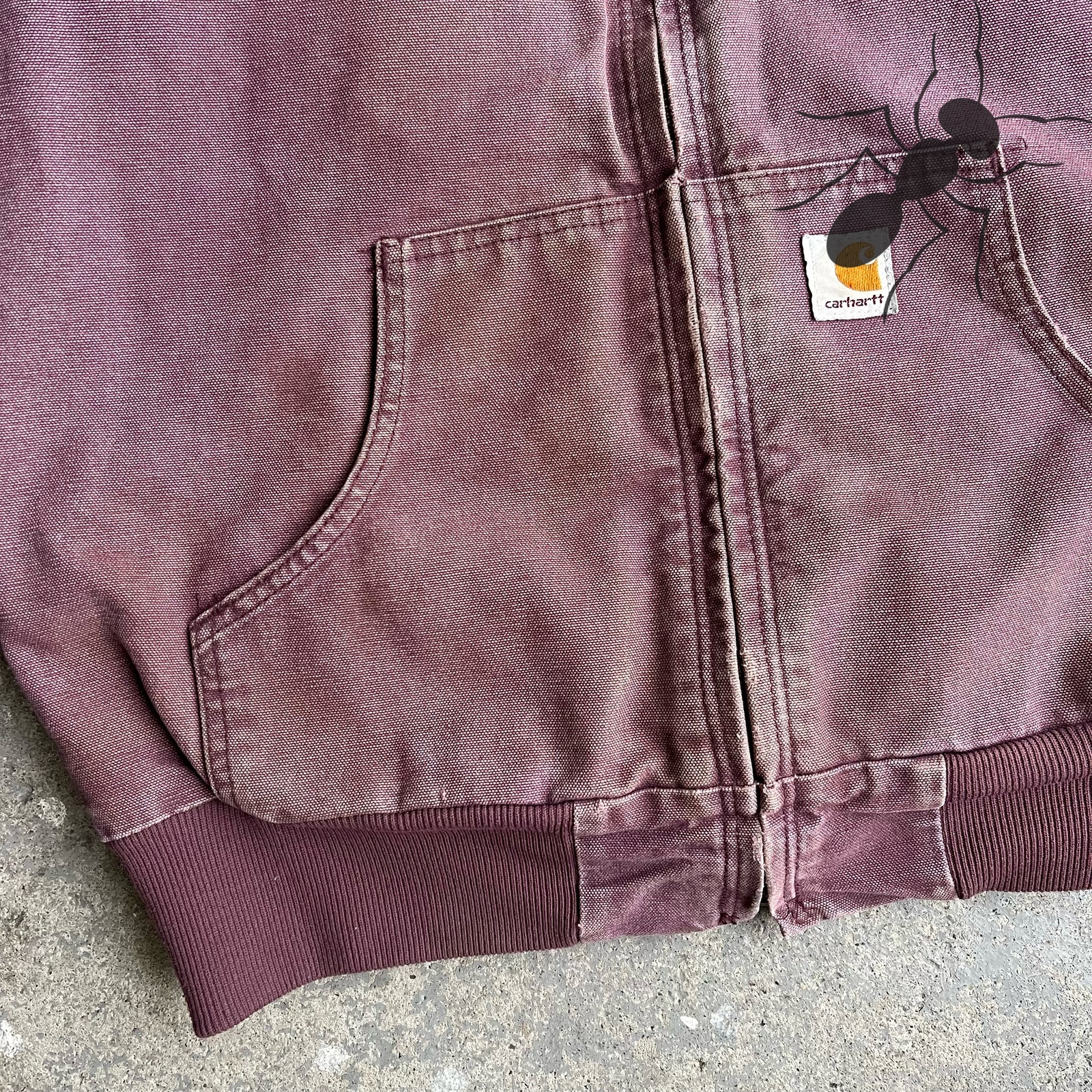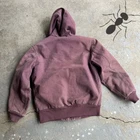 Vintage y2k WOMENS purple faded carhartt hooded work wear jacket. Really nice one. Measures 23x26. Couple spots of discoloration on it. Please check measurements before purchasing. I do my best to show any flaws in pictures. Quick shipping! Bundles encouraged! @ants_haul on Instagram.