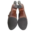 Brand: Xhilaration Department: Womens Type: Heels Style: Clogs / Mule Heels US Shoe Size: 9.5 Color: Brown Upper Material: Leather Outsole Material: Wood Heel Height: High Platform Height: Yes Closure: Slip On Toe Shape: Round Features: Wooden Heel, Studded Trim, Flower Detail Season: Fall, Spring, Summer Condition: Pre-owned