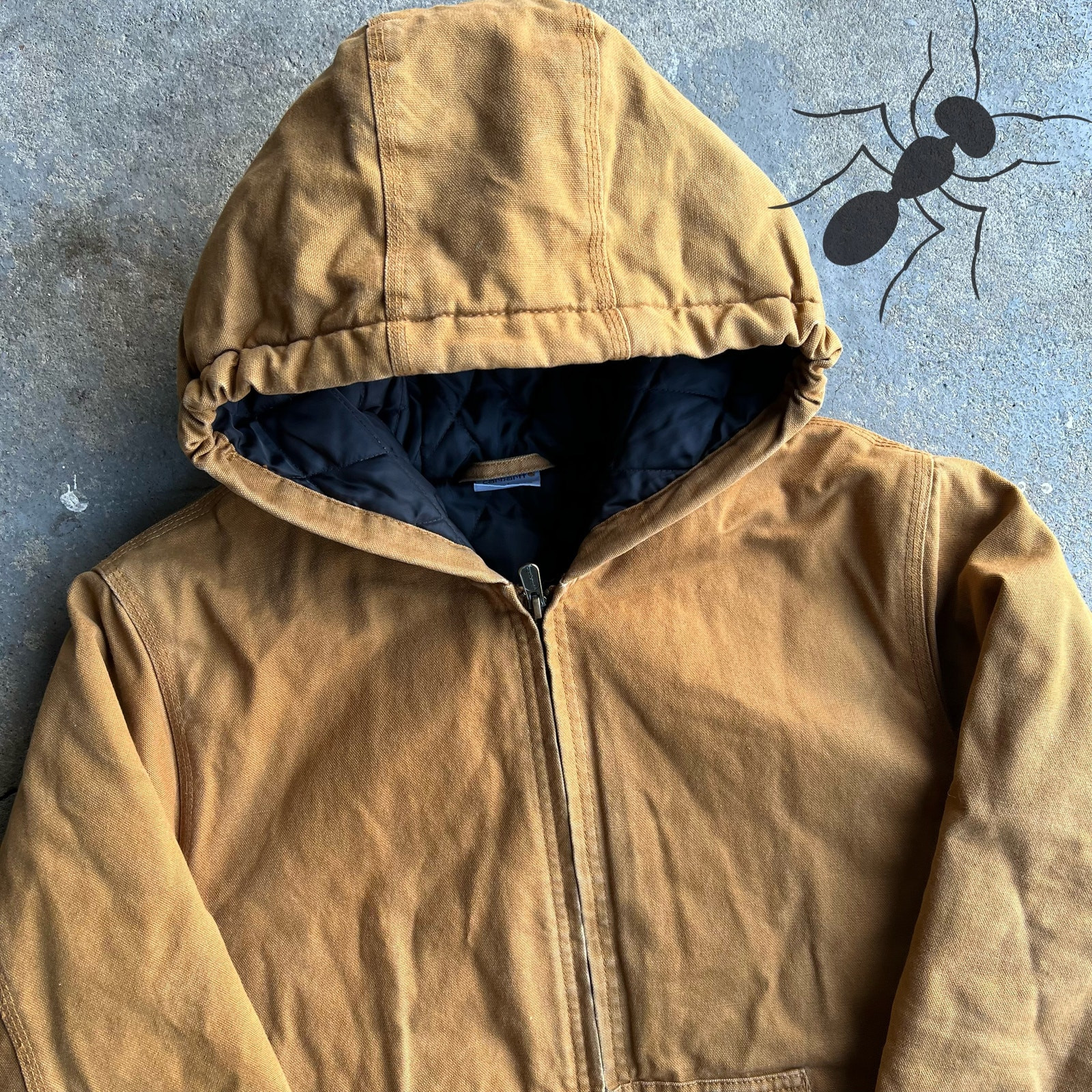 Vintage y2k YOUTH brown carhartt hooded work wear jacket. Great one. Youth size but can also fit some women’s sizes! Measures 21x26. Please check measurements before purchasing. I do my best to show any flaws in pictures. Quick shipping! Bundles encouraged! @ants_haul on Instagram.