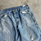 Vintage y2k blue dickies thrashed work wear carpenter pants. Nice pair. Have holes on front and back. Measure 32x32 and a 8.5 leg opening. Please check measurements before purchasing. I do my best to show any flaws in pictures. Quick shipping! Bundles encouraged! @ants_haul on Instagram.