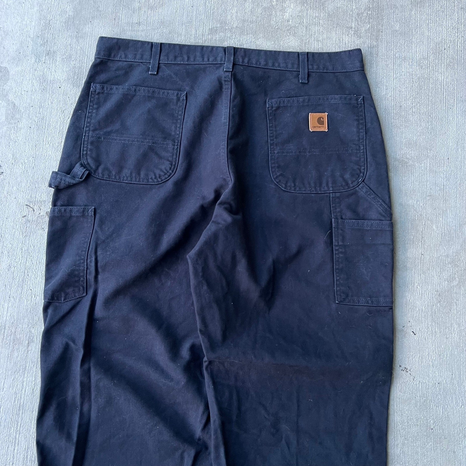 Vintage Y2K dark blue carhartt B11 work wear carpenter pants. Great pair! Super dark blue color. Tag ripped but measure 38x32 and a 9.75 leg opening. Please check measurements before purchasing. I do my best to show any flaws in pictures. Quick shipping! Bundles encouraged! @ants_haul on Instagram. 1025!!