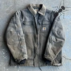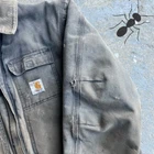 Vintage Y2K faded black Carhartt thrashed c26 arctic style jacket. Really good wear on this one. Great fading. Please check out all the pics to see the flaws. Armpit holes, sleeve holes, bottom of the jacket hem holes. Measures 26x29. Please check measurements before purchasing. I do my best to show any flaws in pictures. Quick shipping! Bundles encouraged! @ants_haul on Instagram.