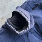 Vintage y2k faded blue j130 MDT carhartt hooded work wear jacket. Really nice color. Great fading on this one. Mostly on the sleeves and the front by the pocket you see the fading. Measures 28x28.5. Please check measurements before purchasing. I do my best to show any flaws in pictures. Quick shipping! Bundles encouraged! @ants_haul on Instagram.