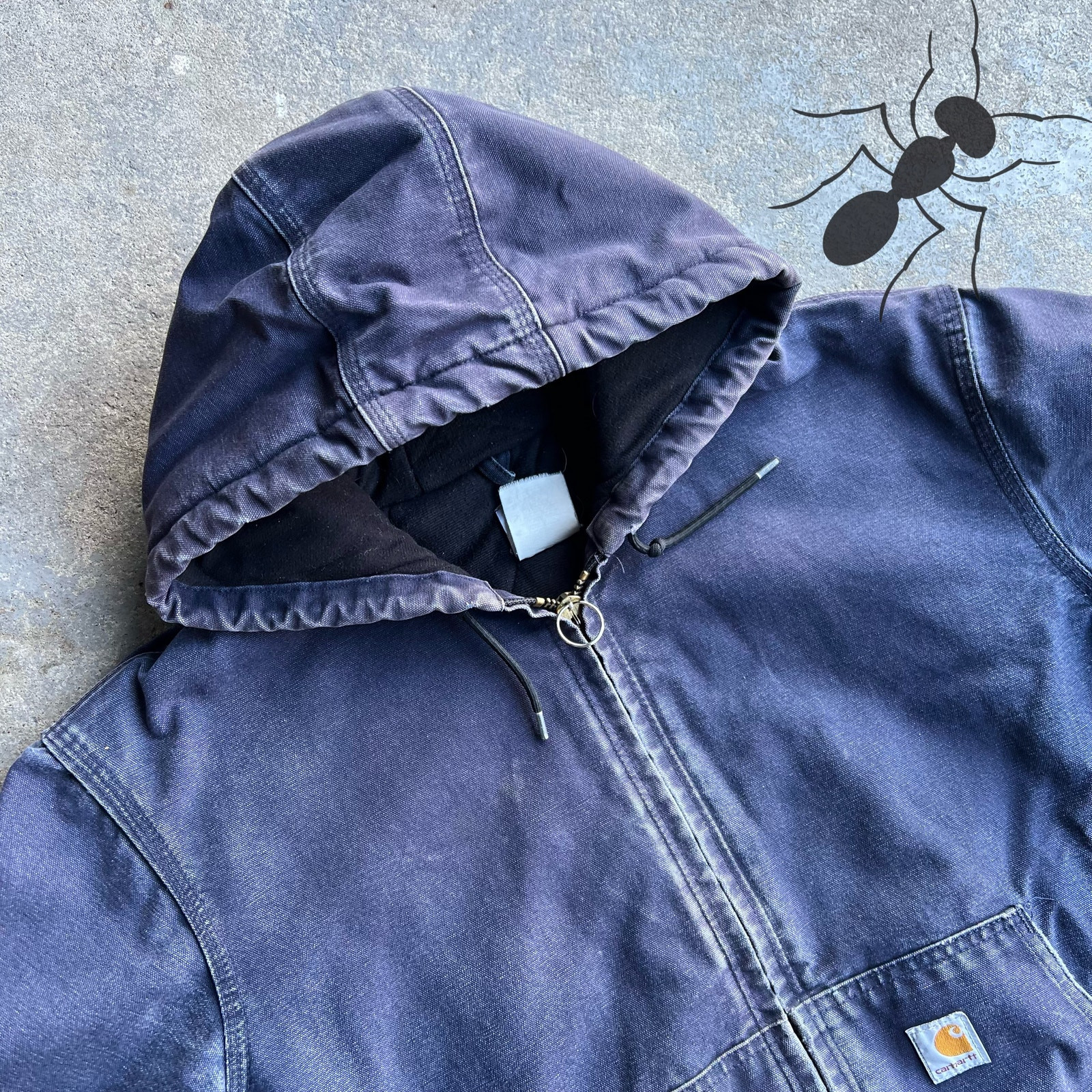 Vintage y2k faded blue carhartt hooded work wear jacket. Beautifully worn in and faded! Sleeves are distressed but not too thrashed up. Missing pull tab but the zipper works fine! Has a replacement key ring. Measures 26x27. Faded out tag but fits large - Please check measurements before purchasing. I do my best to show any flaws in pictures. Quick shipping! Bundles encouraged! @ants_haul on Instagram.