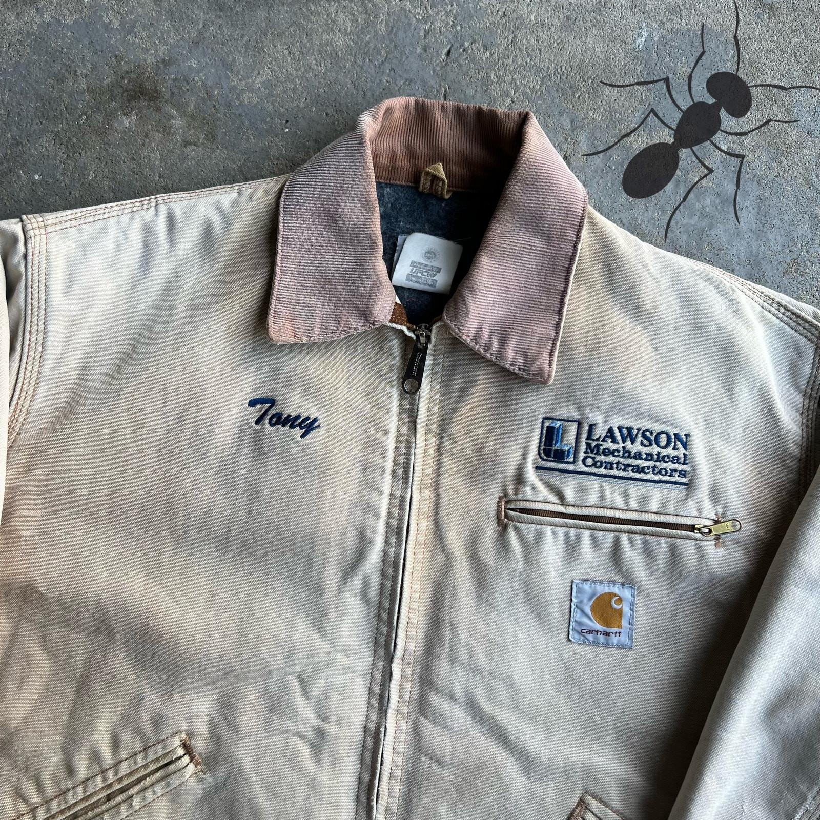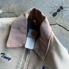 Vintage y2k faded brown carhartt detroit work wear jacket. Really nice wear on this one. Has Tony embroidered on it. Wish I could’ve kept :( . Size tag is faded out but fits like a large. Measures 25x25. Please check measurements before purchasing. I do my best to show any flaws in pictures. Quick shipping! Bundles encouraged! @ants_haul on Instagram.