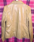 This Evolution faux leather jacket is designed for women in a classic biker style, perfect for a range of occasions including travel, parties, casual outings, and business meetings. The mid-length jacket in size Medium features a beige color with a vintage aesthetic and zipper accents. Made with softshell fabric and lined with nylon, it offers a comfortable fit with long sleeves and a full zip closure. This Y2K-inspired piece is suitable for the seasons of summer, fall, and spring, adding a designer touch to your wardrobe.