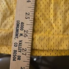 Vintage Yamaha X-Large Competition Plus 100% Nylon Yellow White Black Mesh Jersey long-sleeved shirt, has obvious wear and stains (see photos), measures 23.5" pit to pit, 26.75" from bottom of collar to hem