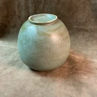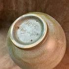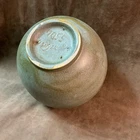 This vase measures 5 1/4 inches tall and 5 inches wide. Excellent condition. I do not know what the signature is, it looks almost like it reads Original.