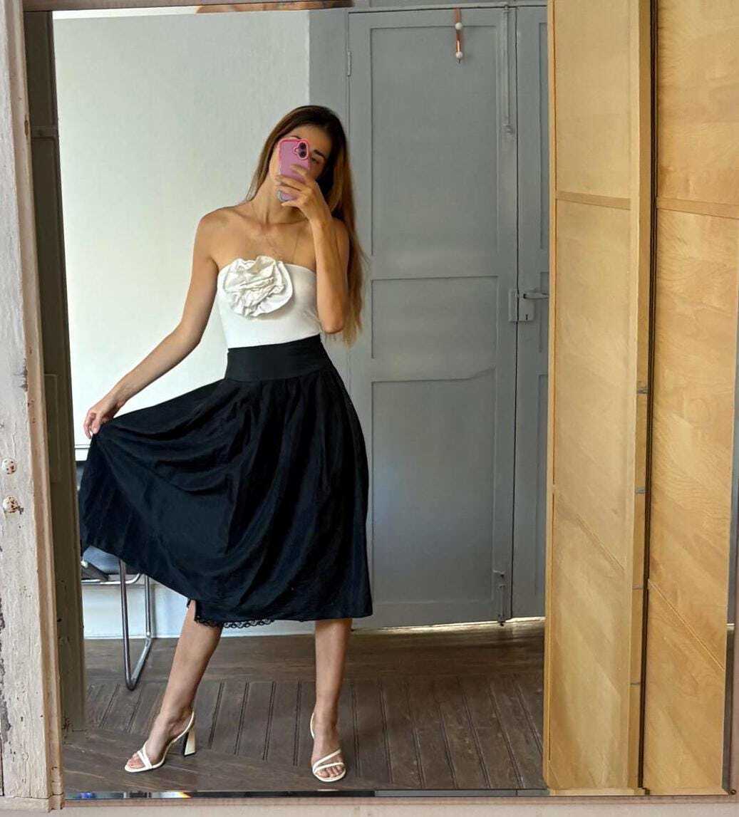 Vintage black midi skirt, Elegant Retro balloon skirt, Feminine high waist mid skirt, Festive midi skirt, 1940s - 1960s outfit A gorgeous vintage black skirt, Elegant and simple. Perfect comfortable yet formal wear. The outer material feels like silk and the underskirt reveals a lovely peek at a lace rim. Wonderfully designed. Please note, this is a vintage garment, the item might show some signs of age or wear. Anything major will be noted in the advertisement! No brand label or material label present. MEASUREMENTS// To ensure the best fit, compare the following measurements to a similar garment of your own: Waist = 33 cm Total length = 80 cm Model : Height : 184 cm Bust: 90 cm usually wears size EU36 - US6 - UK8 SHIPPING// Please message me if you'd like the option of express shipping, or you would like to combine shipping. I ship worldwide, if you don't see your country listed, please let me know and I will add it on. ⍜ 🌸**Important Note:** 🌸 If you need any additional measurements or details, feel free to reach out to us. We are more than happy to help you make an informed purchase. A quick note for my international customers: please be aware that depending on your location, your order may be subject to customs fees, VAT, or import taxes when it arrives in your country. These charges are set by your country’s customs office and are the buyer’s responsibility. Unfortunately, I am unable to cover these additional costs, as they vary from country to country. I recommend checking with your local customs office if you’re unsure about possible fees before placing your order. Thank you so much for your understanding, and please feel free to reach out if you have any questions. Happy shopping! Vintage black midi skirt, Elegant Retro balloon skirt, Feminine high waist mid skirt, Festive midi skirt, 1940s - 1960s outfit A gorgeous vintage black skirt, Elegant and simple. Perfect comfortable yet formal wear. The outer material feels like silk and the underskirt reveals a lovely peek at a lace rim. Wonderfully designed. Please note, this is a vintage garment, the item might show some signs of age or wear. Anything major will be noted in the advertisement! No brand label or material label present. MEASUREMENTS// To ensure the best fit, compare the following measurements to a similar garment of your own: Waist = 33 cm Total length = 80 cm Model : Height : 184 cm Bust: 90 cm usually wears size EU36 - US6 - UK8 SHIPPING// Please message me if you'd like the option of express shipping, or you would like to combine shipping. I ship worldwide, if you don't see your country listed, please let me know and I will add it on. ⍜ 🌸**Important Note:** 🌸 If you need any additional measurements or details, feel free to reach out to us. We are more than happy to help you make an informed purchase. A quick note for my international customers: please be aware that depending on your location, your order may be subject to customs fees, VAT, or import taxes when it arrives in your country. These charges are set by your country’s customs office and are the buyer’s responsibility. Unfortunately, I am unable to cover these additional costs, as they vary from country to country. I recommend checking with your local customs office if you’re unsure about possible fees before placing your order. Thank you so much for your understanding, and please feel free to reach out if you have any questions. Happy shopping! × × × × × × × × × × × Buy now and save! Shipping info Click the Shipping & Payments tab above the listing description for more info Click the Shipping & Payments tab above the listing description for more info! Additional delivery notes PICK UP OPTION Sorry, our items are NOT available for pick-up. PAYMENT Immediate payment is required upon selecting "Buy It Now" or upon checking out through the cart. We accept payment via U.S. PayPal accounts and all Major Credit Cards, Debit Cards & Google Pay. We are legally required to collect sales tax in those states and localities where we maintain a physical presence (nexus). The applicable amount of sales tax charged to an order will be calculated based on the shipment destination's state and local sales tax laws. Thank you for shopping with us on eBay! Additional Information No additional information at this time Ask seller a question You might also like purificacion garcia dark green smart jumper, Long sleeved polo shirt, Unworn cot Vintage Roberta Puccini eggshell wool cardigan, Cottage core aesthetic jumper, V Escada sport denim jacket, Baby pink and light blue summer coat, Vintage high en Bright red vintage Chemise Lacoste cardigan, V neck classic aesthetic jumper, Br Contact To contact our Customer Service Team, simply click the button here and our Customer Service team will be happy to assist. Ask seller a question © My Store Shipping & Payments Click the Shipping & Payments tab above the listing description for more info Payment Accepted Payment Methods Immediate payment is required upon selecting "Buy It Now" or upon checking out through the cart. We accept payment via U.S. PayPal accounts and all Major Credit Cards, Debit Cards & Google Pay. We are legally required to collect sales tax in those states and localities where we maintain a physical presence (nexus). The applicable amount of sales tax charged to an order will be calculated based on the shipment destination's state and local sales tax laws. Thank you for shopping with us on eBay! Returns Returns are accepted Items must be returned within 14 days of the auction ending Buyer will pay for return shipping. eBay integration by