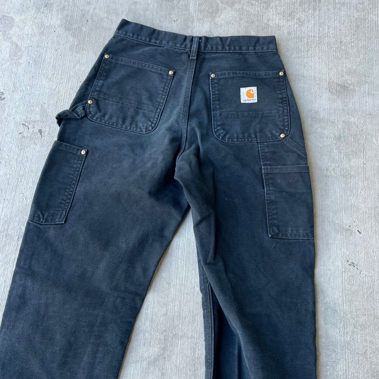 Vintage carhartt black y2k double knee work wear carpenter pants. Great essential pair. Measure 27x31 and a 8.25 leg opening. Please check measurements before purchasing. I do my best to show any flaws in pictures. Quick shipping! Bundles encouraged! @ants_haul on Instagram. 0709!!!