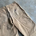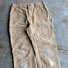 Vintage carhartt brown faded double knee work wear carpenter pants. Great pair. Measure 31x30 and a 9 leg opening. Please check measurements before purchasing. I do my best to show any flaws in pictures. Quick shipping! Bundles encouraged! @ants_haul on Instagram. 545!!!
