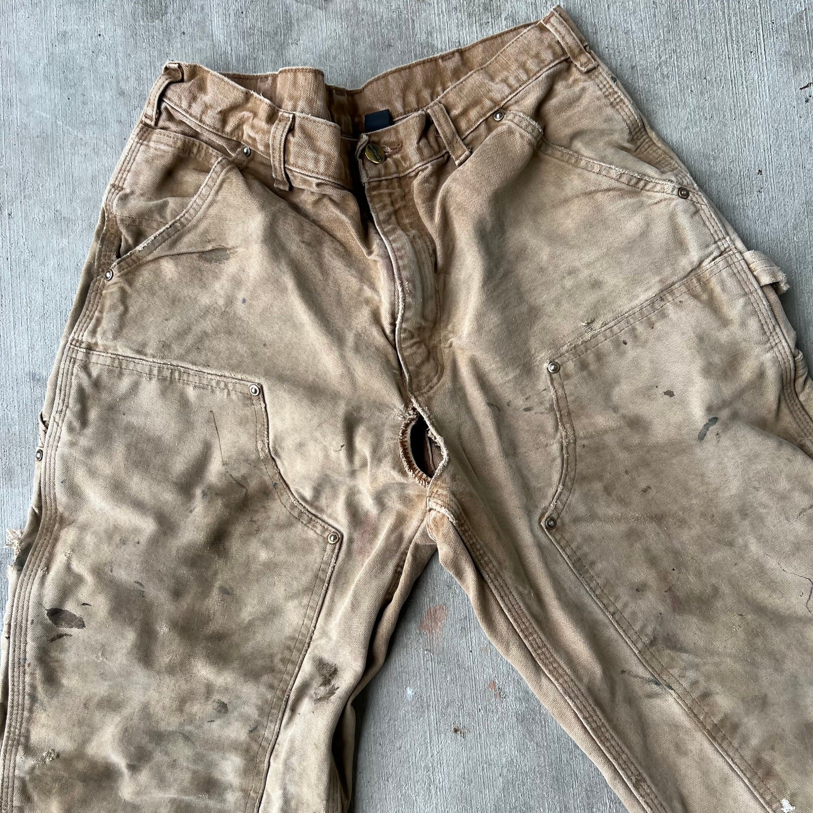 Vintage carhartt brown y2k thrashed double knee work wear carpenter pants. Sweet pair. Measure 31x32.5 and a 8.5 leg opening. Please check measurements before purchasing. I do my best to show any flaws in pictures. Quick shipping! Bundles encouraged! @ants_haul on Instagram. 591!!!